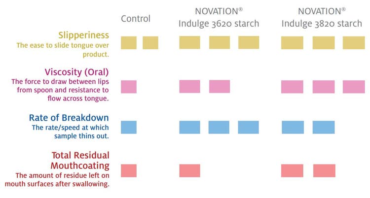 NOVATION® Indulge 3620 starch and NOVATION® Indulge 3820 starch are ideally placed to meet these complex demands by allowing you to: