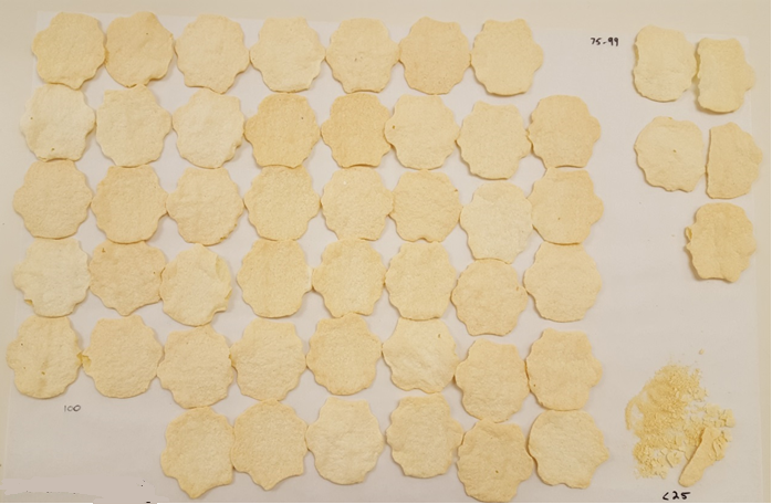 Figure 1: Fabricated baked potato chip formulation used to evaluate the effect of starch selection on breakage in a sheeted snack.
